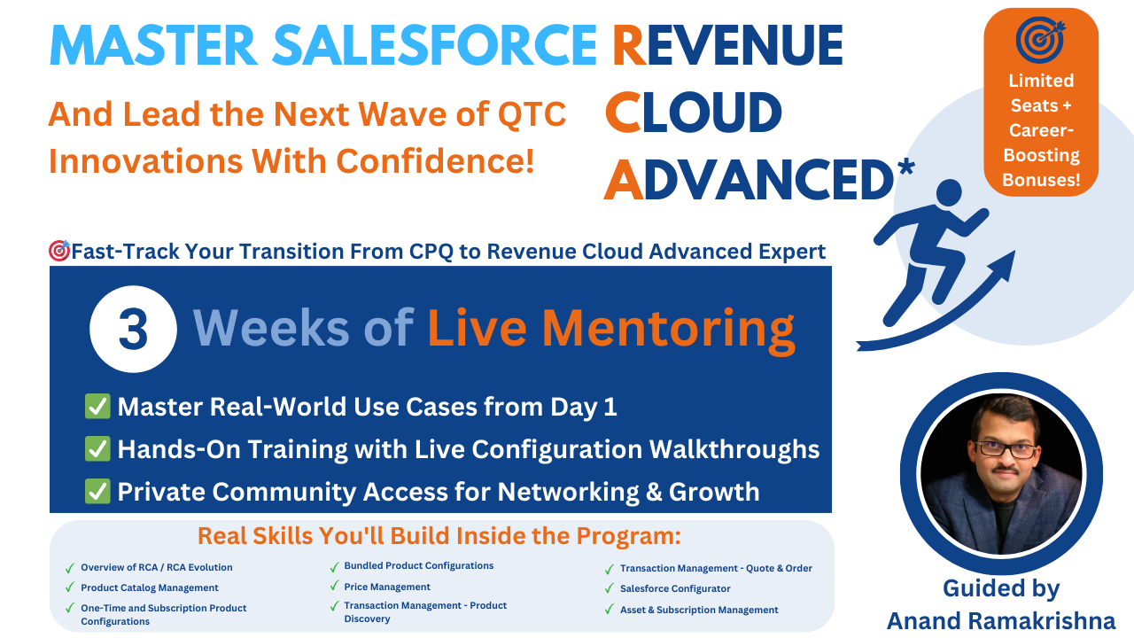 A live, mentor-led journey designed for CPQ experts aiming to lead in RCA.