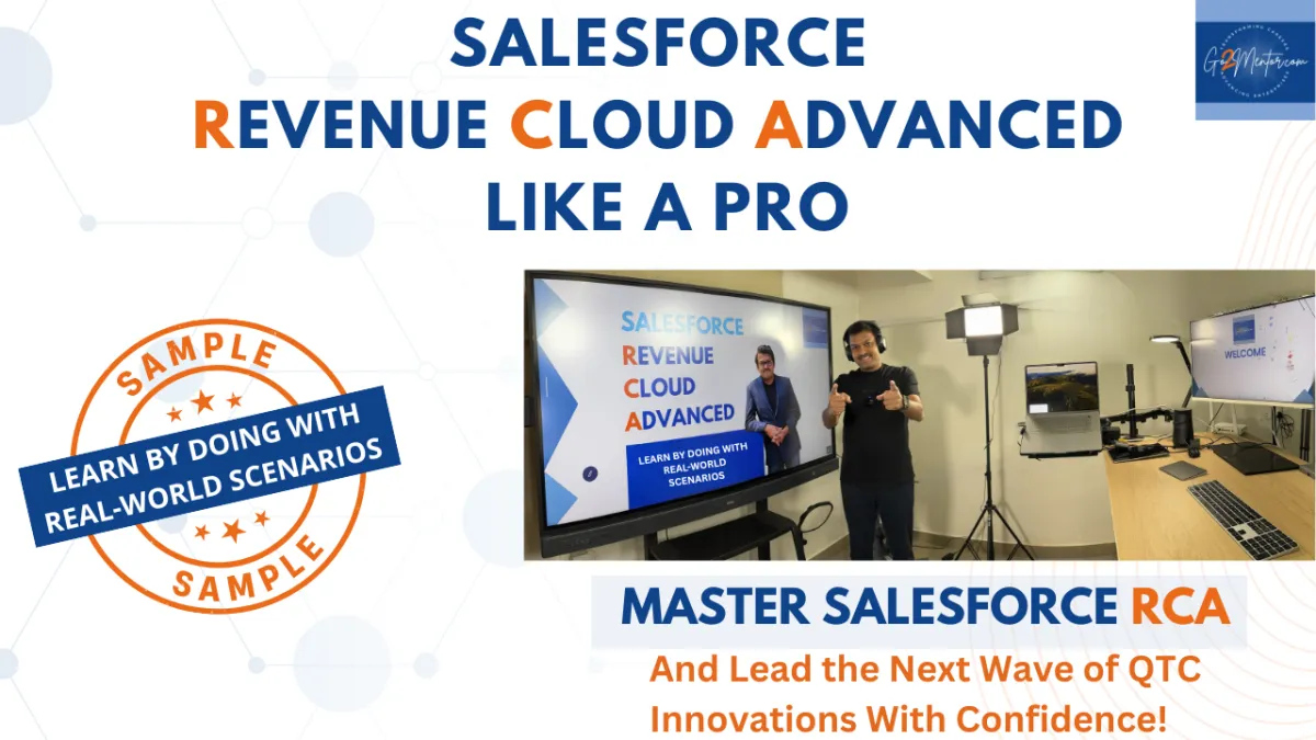 This sample course has been specially created to give you a preview of how our full program is structured and curated. It’s designed to walk you through the learning experience you can expect when you enroll in the comprehensive Revenue Cloud Advanced (RCA) course.